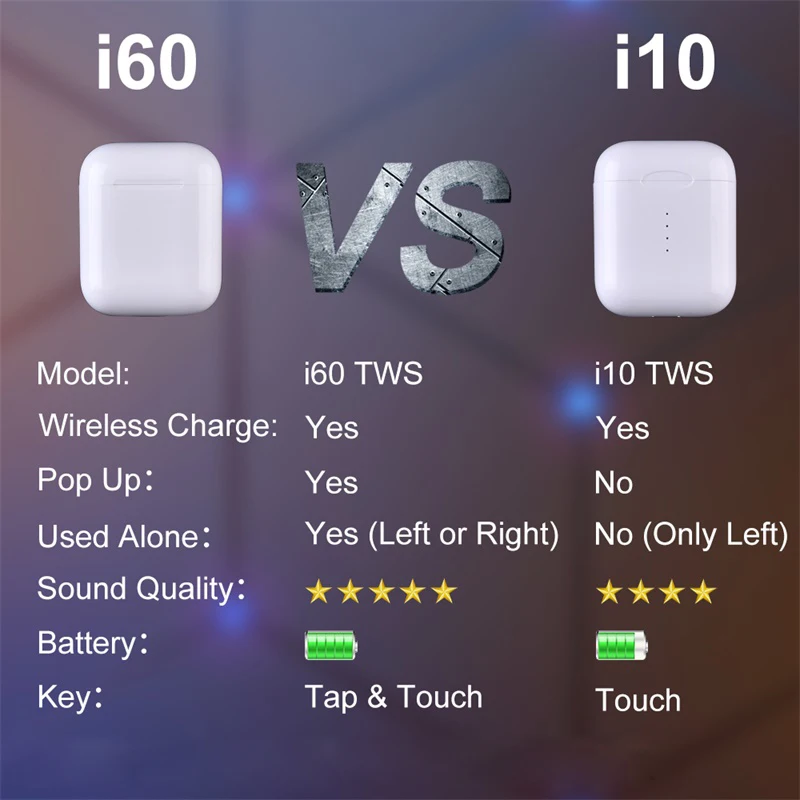 i60 TWS Pop Up Wireless Bluetooth Earphone Separate Use QI Wireless Charging Box Bass Earphones PK i30 i100 i200 i500 i10 TWS
