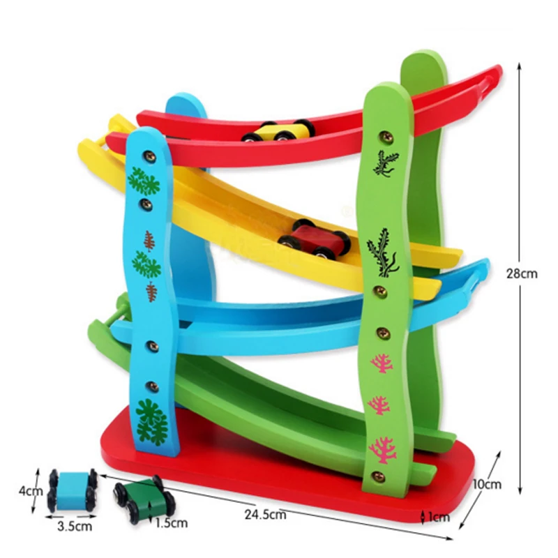 Children Early Childhood Educational Toys Gliding Stretch Scooter Colorful Cartoon Wooden Toys Gifts For Babies 4 Cars